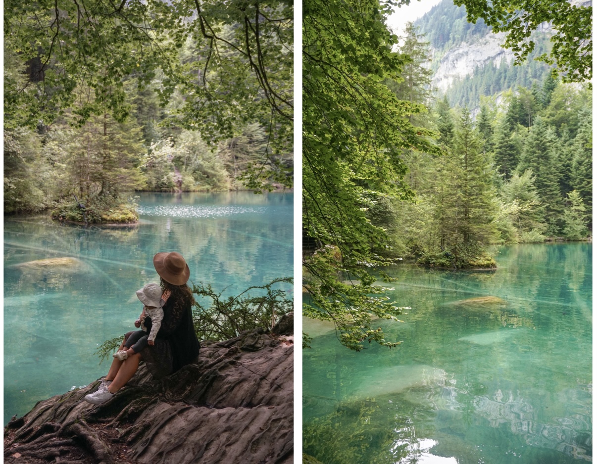 Le lac de Blausee est facile d’accès et donc très fréquenté. Ne vous attendez pas à vous retrouver seuls sur les lieux, même à l’ouverture. Il y a toujours du monde. Il reste malgré tout un incontournable. Un parking se situe juste devant. Il faudra ensuite passer l’entrée et marcher quelques minutes sur un sentier avant d’atteindre le lac. La particularité de ce lac est vraiment sa couleur qui est magnifique : un bleu émeraude avec des touches de vert par endroits… La couleur du lac et ses eaux cristallines proviennent d’une source souterraine. Nous avons trouvé que le lieu avait vraiment un charme particulier et une ambiance presque féérique, malgré le monde présent sur place. Le tour du lac se fait rapidement, en une vingtaine de minutes. Plusieurs restaurants et bars sont présents sur place.